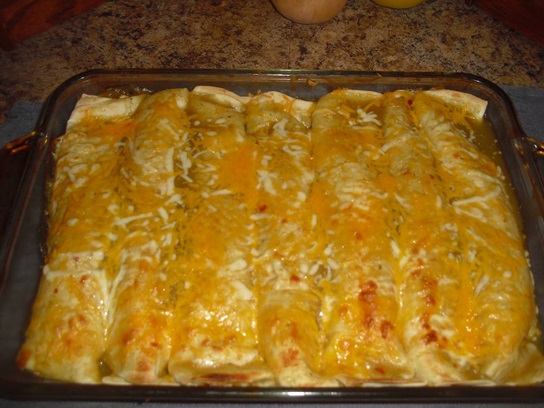 - Spoon 1/3 cup Old Home Cottage Cheese mixture down center of each tortilla; roll up. Place in baking pan.